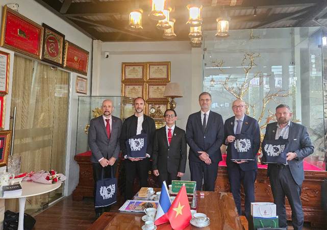 GS.TSKH.BS. Dương Quý Sỹ – Chủ tịch Hội Y học Giấc ngủ Việt Nam cùng đoàn công tác khối Pháp ngữ: Ông Olivier Brochet – Đại sứ Cộng hoà Pháp tại Việt Nam; ông Edgar Doerig – Trưởng đại diện khu vực Châu Á – Thái Bình Dương của Tổ chức quốc tế Pháp ngữ (OIF); ông Herve Conan- Giám đốc Cơ quan Phát triển Pháp (AFD) tại Việt Nam; ông Arnaud Pannier – Tùy viên phụ trách hợp tác giáo dục, Đại sứ quán Pháp tại Việt Nam; ông Nicolas Leymonerie – Trung tâm Pháp ngữ Antenne tại Đà Lạt cùng các thành viên trong đoàn.