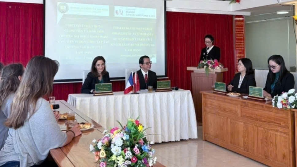 GS.TSKH.BS Dương Quý Sỹ và Giám đốc Học thuật & Quan hệ Quốc tế Đại học Paris Cité – GS.TS. Victoire de Lastours – trao đổi về nội dung học tập của các sinh viên Pháp vừa mới thi vào BSNT Pháp hiện đang thực tập bệnh viện tại BVĐK Lâm Đồng và việc đổi mới chương trình đào tạo bác sĩ nội trú Pháp (Lâm Đồng, ngày 15/11/2025).